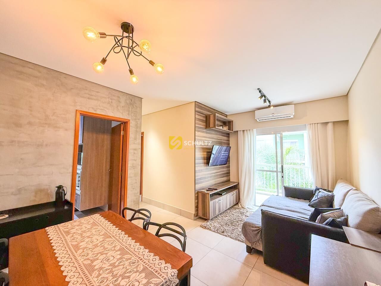 Apartamento à venda com 2 dormitórios (1 Suíte), wc social, sala 2 ambientes com painel e varanda, cozinha planejada, área de serviço e 1 vaga de garagem. Acabamento: Teto em gesso rebaixado, ar condicionado na suíte e sala, forno cooktop e coifa. Área do condomínio: playground, área gourmet, salão de festas, churrasqueira, além da portaria 24h